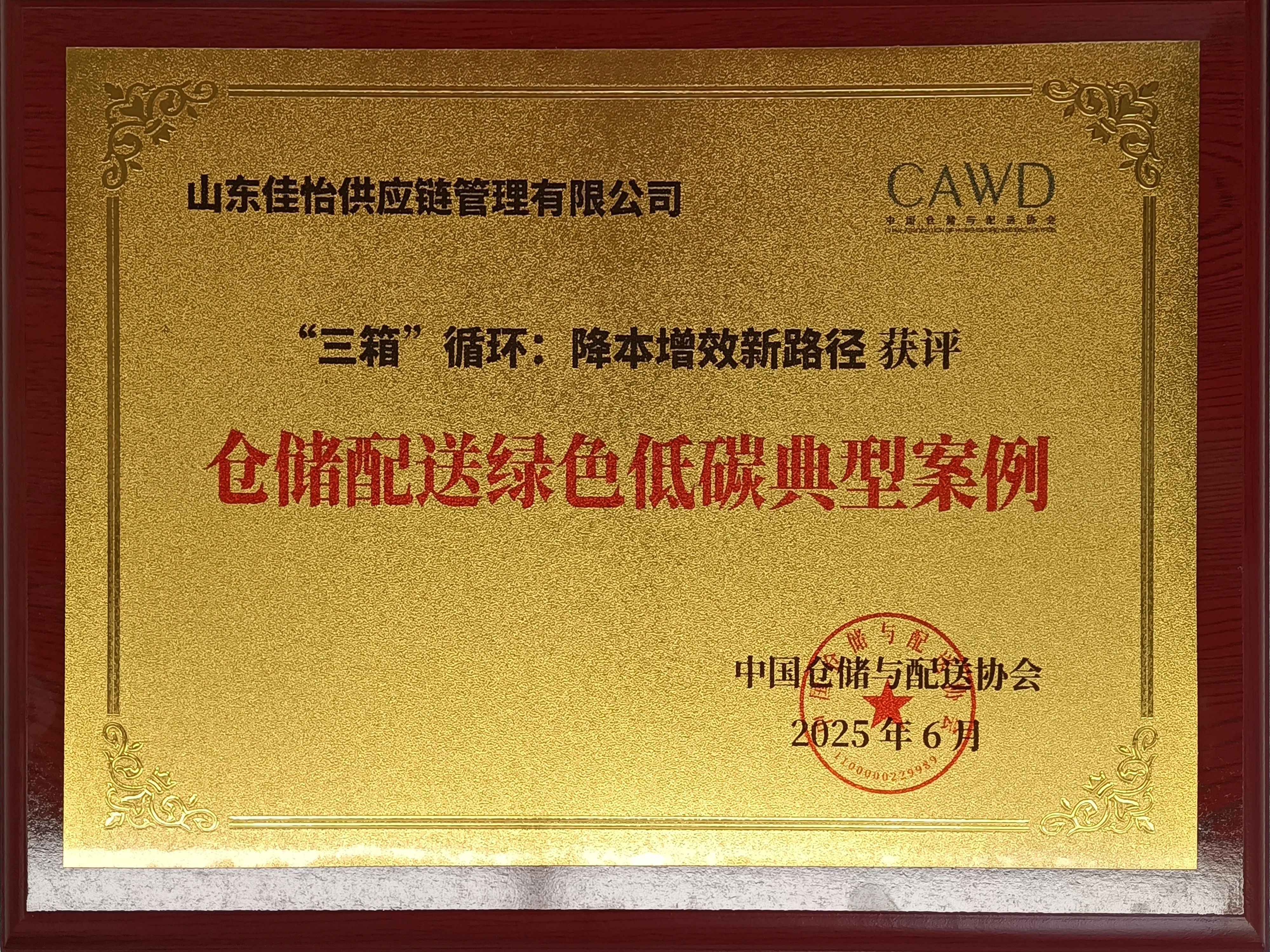 近日,“第二十届中国仓储配送大会暨第十二届中国(国际)绿色仓储与配送大会”在浙江宁波召开。佳怡供应链企业集团受邀出席,获评仓储配送绿色低碳典型案例。